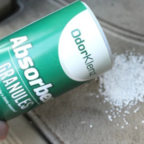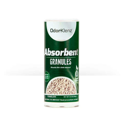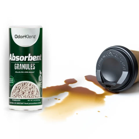 A strong solution to soak up wet messes AND their odors, the OdorKlenz Absorbent Granules use odor-fighting minerals to absorb stinky spills and leave your surface odor-free, without the use of harsh chemicals or fragrances.